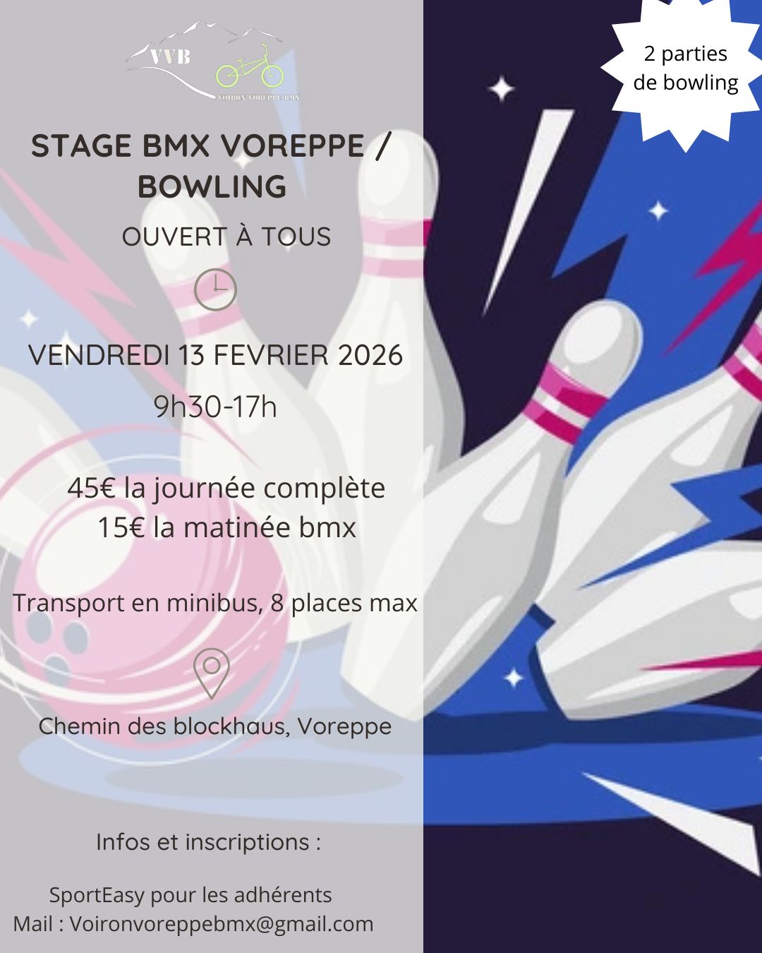 Pour les non-licenciés, l’inscription se fait par mail à : voironvoreppebmx@gmail.com